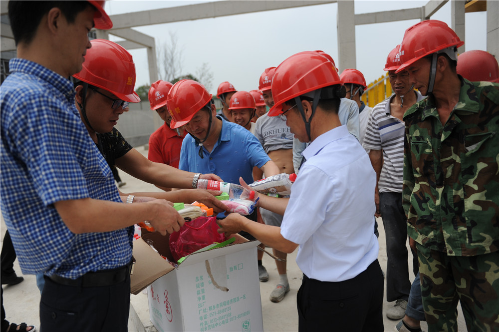 2018-08-01 市建設局領導赴我集團承建的星都會小區工程開展高溫慰問 近來,持續高溫無疑是對建筑工地上一線工人的嚴峻“烤驗”。7月31日上午,桐鄉市建設局黨委副書記許劍明、市建管處主任陸偉杰、市建管科副科長鐘建國等領導赴我集團承建的星都會小區工程建設施工現場開...