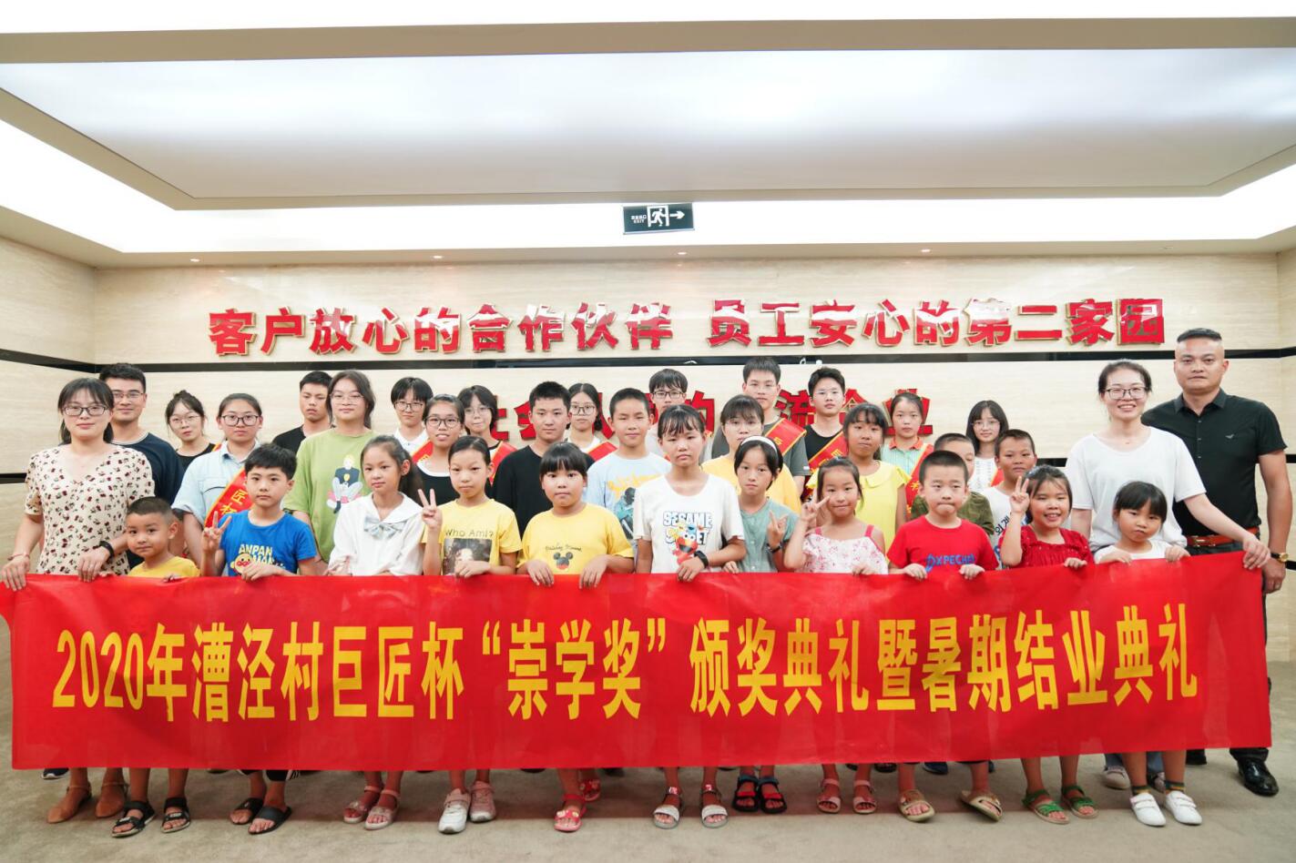 2020-08-28 匠行 | 別出心裁!漕涇村2020年巨匠杯“崇學獎”頒獎典禮“搬”到了集團總部 為激勵漕涇學子勤奮學習、立志成才,我集團作為漕涇村文明結對單位,專門為漕涇村的優秀學子頒發巨匠杯“崇學獎”。8月28日下午,2020年巨匠杯“崇學獎...