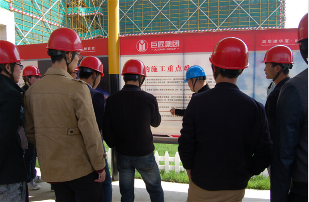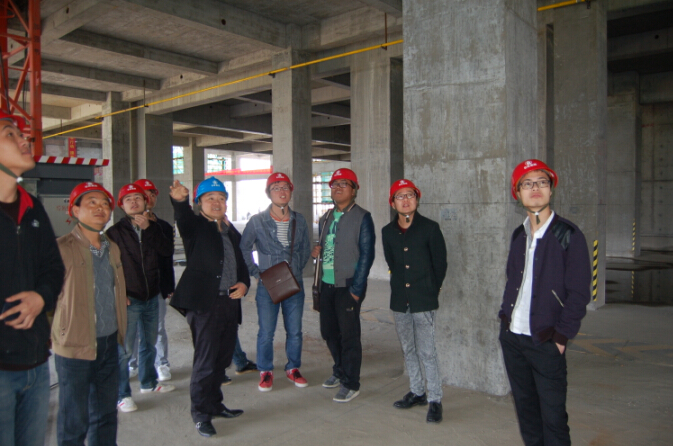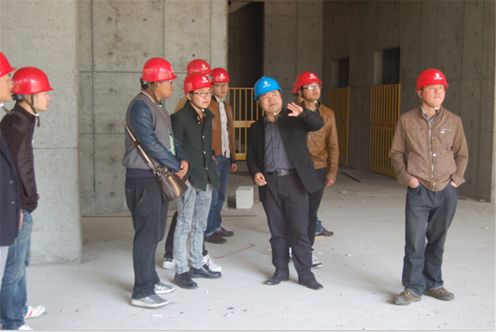 在副總工程師、技術(shù)管理部經(jīng)理蔡會平的帶領(lǐng)下,技術(shù)骨干們參觀了樣板區(qū)和施工現(xiàn)場。在樣板區(qū),蔡工為大家詳細(xì)講解了施工過程中遇到的質(zhì)量通病問題和容易忽視的細(xì)節(jié)。在施工現(xiàn)場,蔡工介紹了該工程高大難新工作的攻堅情況。如大堂的高大支模架搭設(shè)、超高超重梁的處理,指出了工程項目實測實量的必要性,講解了具體實施步驟。