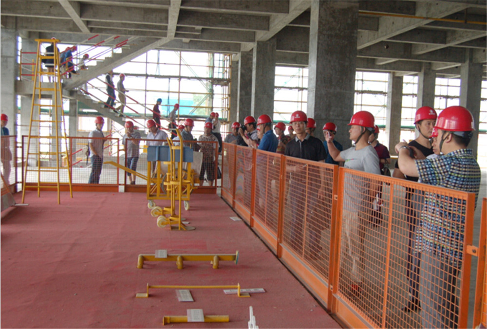 考察團首先參觀了我集團承建的桐鄉市旅游廣場一期工程。施工管理人員向考察團介紹了項目管理、施工管理等方面的工作經驗,并就標準化施工在該項目上的推廣和取得的成效、項目創優創杯、文明施工、綠色施工等方面作了詳盡的闡述。