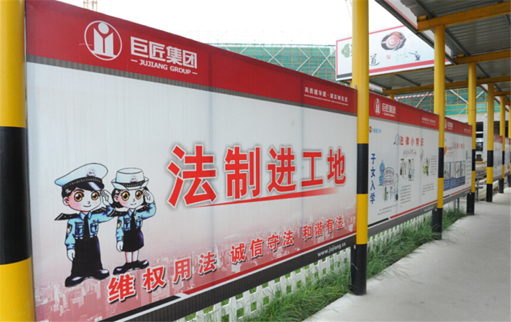 這幾年,集團(tuán)注重工程形象建設(shè)、創(chuàng)建平安工地,著力打造法治示范工地,在施工現(xiàn)場(chǎng)以圖文并茂的法治宣傳欄、消防安全墻、法治文化長(zhǎng)廊,安全顯示屏,建筑民工維權(quán)告示牌、法治茶館等平臺(tái)加強(qiáng)法律宣傳,增強(qiáng)農(nóng)民工的法治意識(shí)。在普法過(guò)程中,集團(tuán)也做到“四個(gè)結(jié)合”,法制宣傳教育與安全生產(chǎn)相結(jié)合、與職工權(quán)益保護(hù)相結(jié)合、與經(jīng)營(yíng)管理相結(jié)合、與綜合治理相結(jié)合,拓展了“法律進(jìn)企業(yè)”工作領(lǐng)域,豐富了“法律進(jìn)工地”的內(nèi)涵,為打造“法治企業(yè)”、“和諧工地”奠定了基礎(chǔ)。企業(yè)成為桐鄉(xiāng)“法律十進(jìn)”的特色示范點(diǎn)。