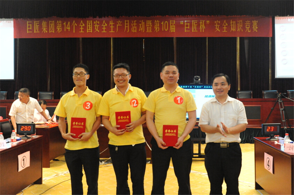 為全面貫徹落實全國第14個安全生產(chǎn)月活動的精神,全面提高廣大安全生產(chǎn)從業(yè)人員的安全知識,達到“以賽促學、以學促用、保證安全生產(chǎn)”目的,6月24日,集團開展了以“加強安全法治,保障安全生產(chǎn)”為主題的第10屆“巨匠杯”安全生產(chǎn)知識競賽。三個管理公司各派2支代表隊參加了比賽。集團全體行政員工和項目部員工觀摩比賽。
