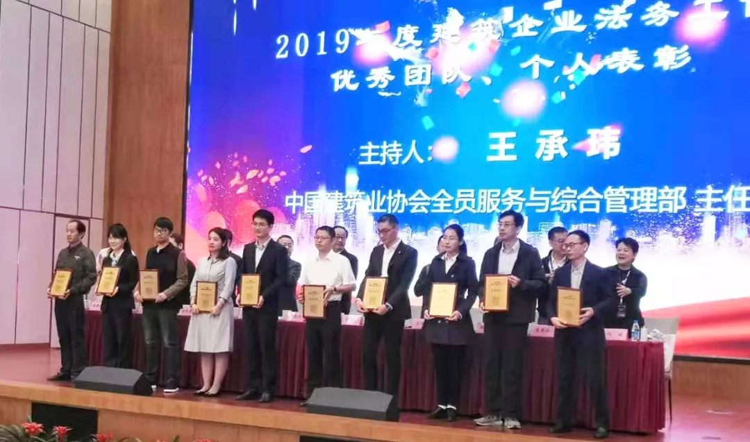 2019-10-26 我集團法務部榮獲“2019年度華東地區建筑企業優秀法務團隊”稱號 10月25日,在華東地區六省市建協和建筑時報共同舉辦的“第四屆建筑企業法務工作(金雞湖)論壇會上,我集團法務部榮獲“2019年度華東地區建筑企業優秀法務團隊”稱號。集團副總裁涂勇偉代表我司出席本次...