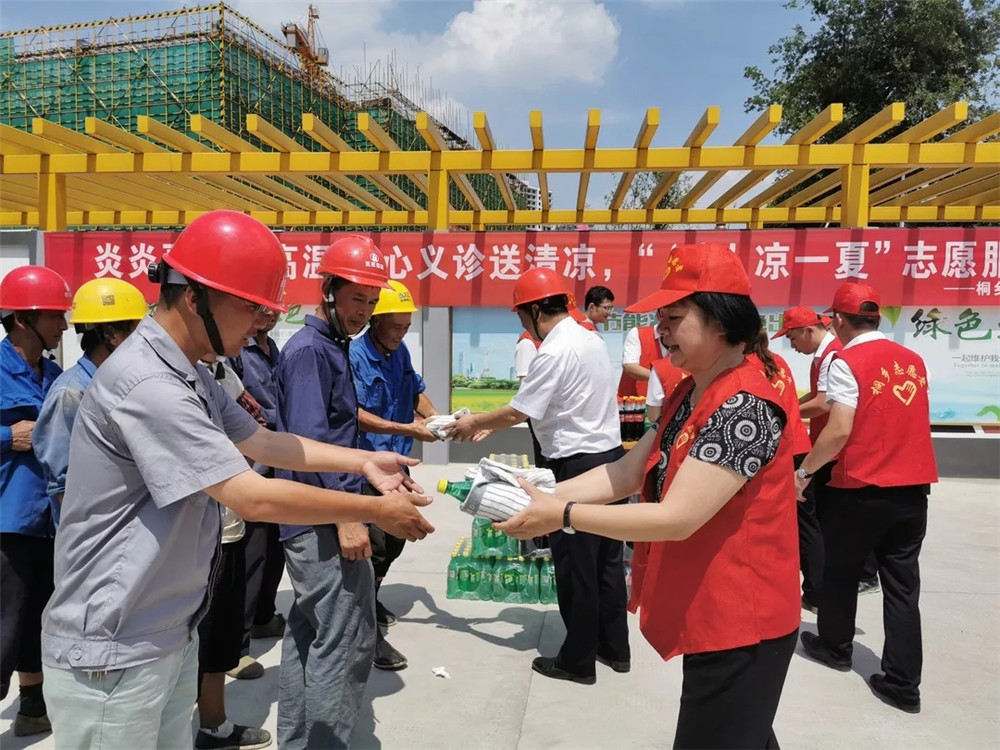 2019-07-26 送清涼·送義診 這份關愛請查收! 大暑剛過,氣溫攀升水煮+燒烤模式已混合開啟汗流浹背,揮汗如雨是堅守施工一線伙伴的常態——讓我們致敬每一位接受“烤”驗的建筑人 7月25日,桐鄉市衛生健康局與我集團共同開展的“送清涼&mi...